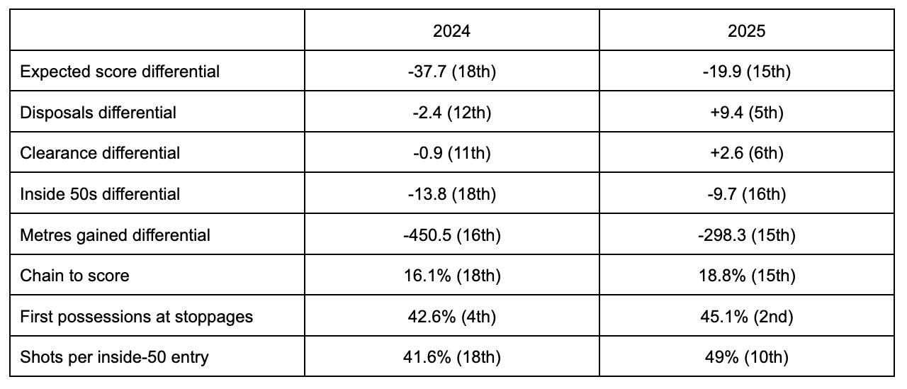 Optimism is in scarce supply at Arden Street. But, heading into 2026, I can detect two sources of it: the micro case that the Roos are improving, and the macro case that stagnation would at least force a reckoning. To begin with: the Roos are getting better. Glacially, agonisingly, spasmodically – but the signs are there. Here’s proof: