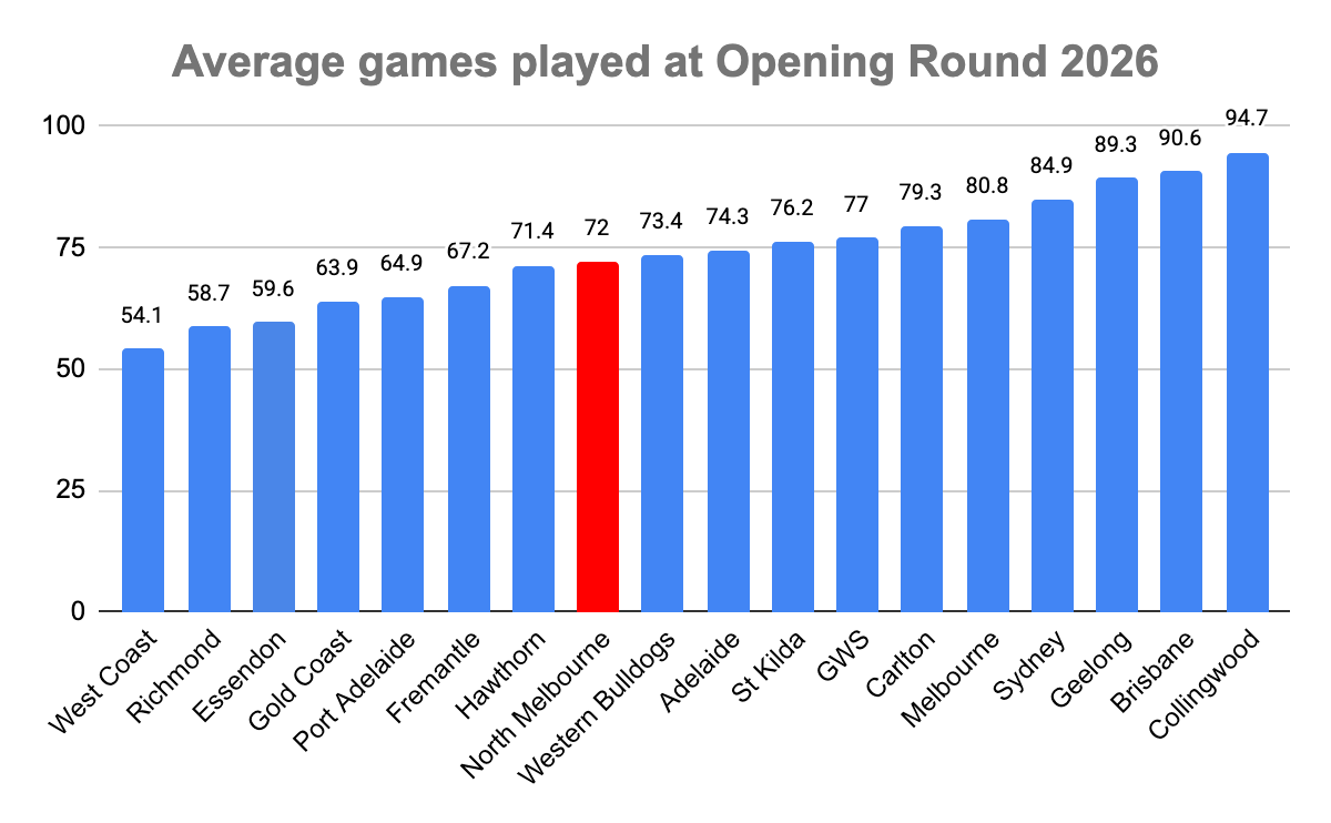 Teams with fragile confidence prefer to start the season with benign draws. The Roos’ first six games are against Port Adelaide, West Coast, Essendon, Carlton, Brisbane, and Richmond. North hasn’t split its first six games of the season since 2018. In fact, since 2020, the Roos have won a cumulative total of just six of 30 games from Rounds 1 to 5. This is an excellent opportunity to build into the season, embed habits that will help against the better sides, and not extinguish the hopes of supporters before May.
